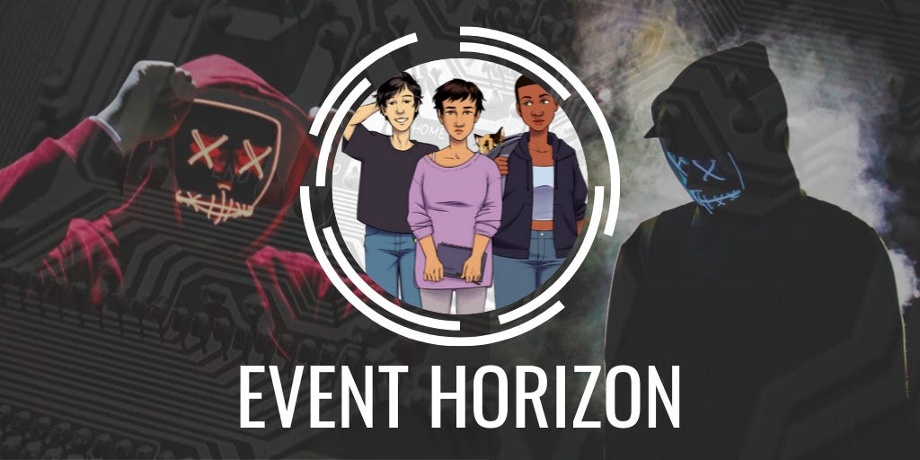 Event Horizon will focus heavily on Ty and his trials in the Merry Hacksters' lair, the Vermont TeddyCo basement. We'll also see plenty of Chandra and Kyra as they continue to confront the decisions they've made on how to best handle EMPATHY and their relationships with each other (and with themselves) going forward.
