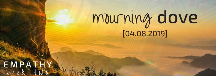 Book two in the EMPATHY series, Mourning Dove, is, per its back cover description, “an evocative, sweeping symphony of love, revenge, and desperation in cacophonous times.”