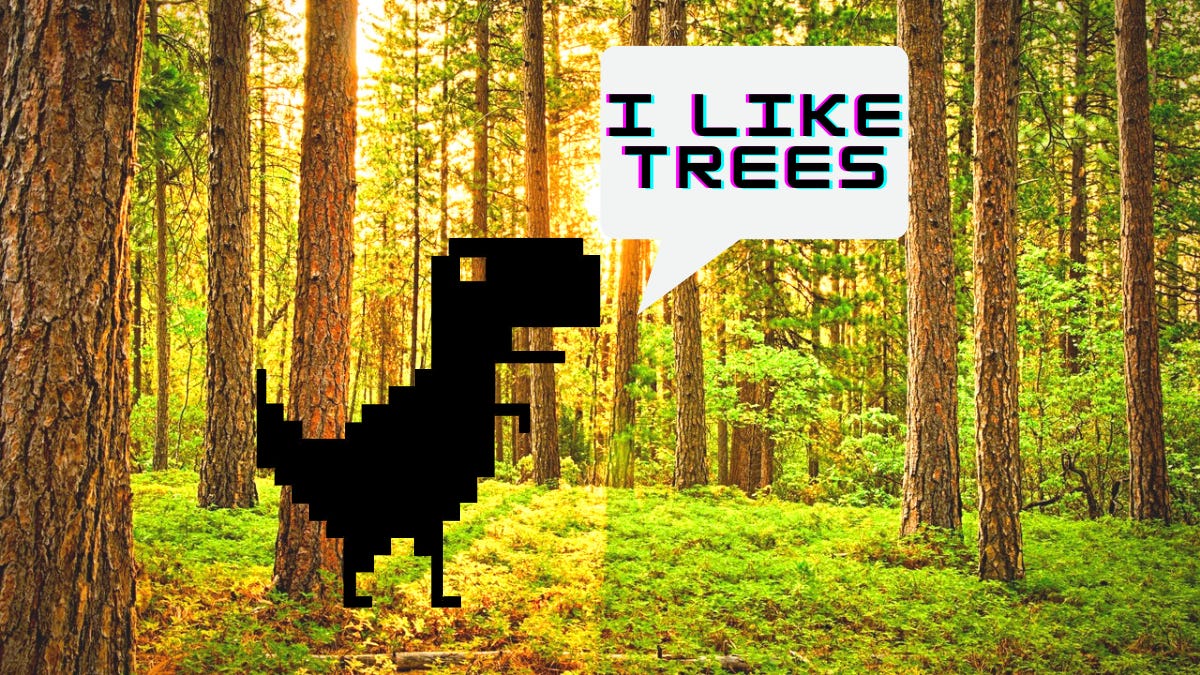 These trees won't plant themselves. But how, exactly, does playing a dinosaur game on the internet plant trees? Good question.