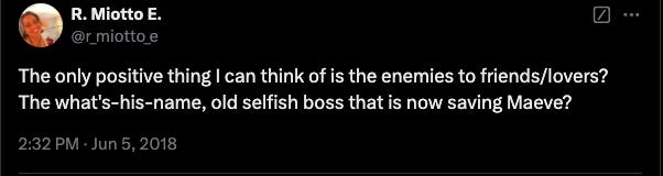 Thankfully, Twitter user @r_miotto_e had a thought that got me thinking about the value of a conversation on redemption arcs. I'll leave the original comment below for the sake of giving credit where credit is due.